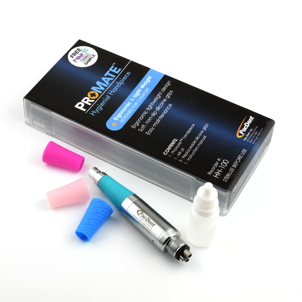 Reduce fatigue and daily trauma on the hand, and arm muscles with our new ProMate hygiene handpiece. The lightweight ergonomic design minimizes vibration and chatter. The textured silicone grip and contoured shape provide superior comfort and non-slip control.